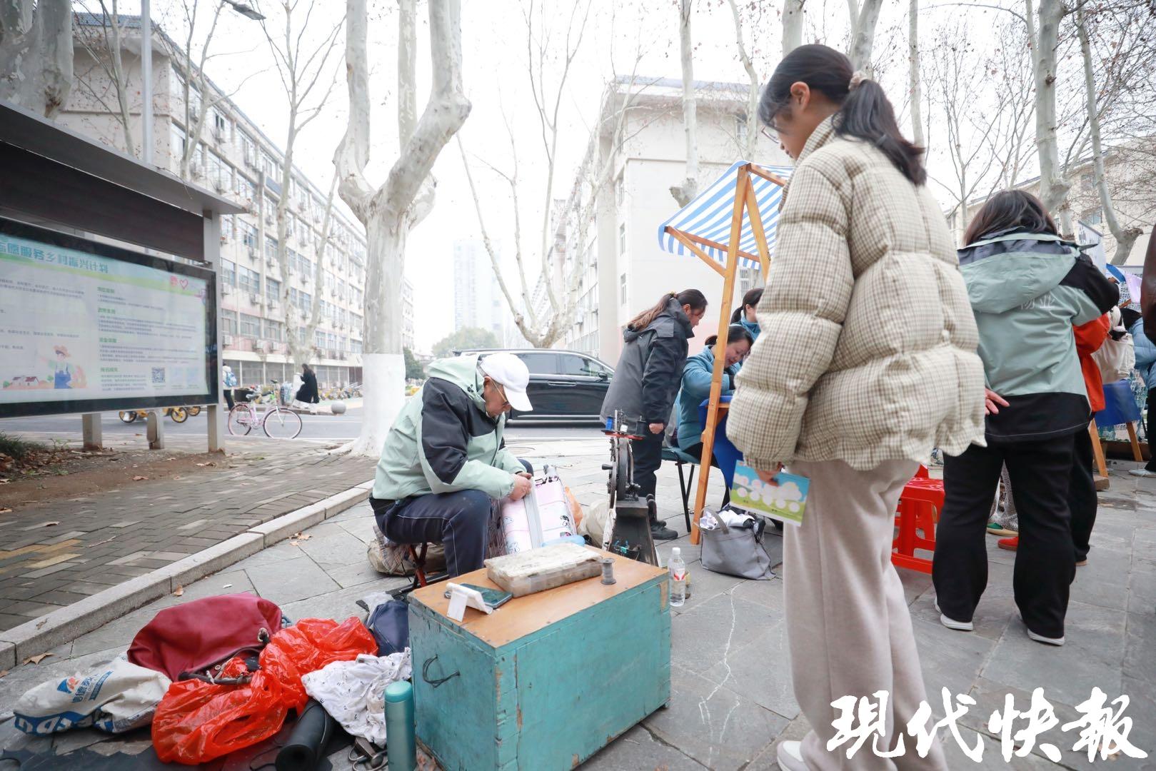 修车修鞋、织补衣服、把脉义诊……学校后勤保障处也带来了许多志愿服务。校内学生的生活需求,更是大家关注的重点。特别是义诊摊位,排起了长队。大四学生樊伟杰正在准备考研面试,近期感到压力很大。身体不舒服,准备就会不到位。“医生提了很多建议,比如喝一些花茶,到校医院再配点药。”