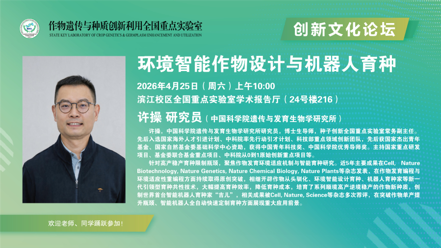 全国重点实验室 | 创新文化论坛:环境智能作物设计与机器人育种