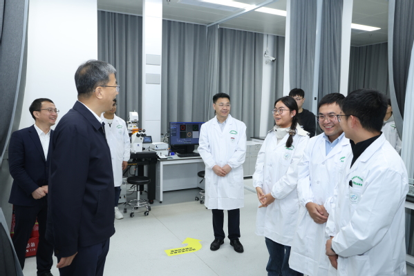 在学校滨江校区办学成果展厅和作物遗传与种质创新利用全国重点实验室,怀进鹏调研了学校总体情况、最新科研进展和社会服务情况,听取了生物育种研究与人才培养情况汇报,就生物育种关键技术支撑、实验平台运行等问题与师生交流。在前沿交叉研究院,怀进鹏听取了学科交叉研究进展与创新成果转化情况介绍,对学校在人才培养、学科交叉建设、高水平科研平台建设等方面展现的担当作为给予充分肯定。